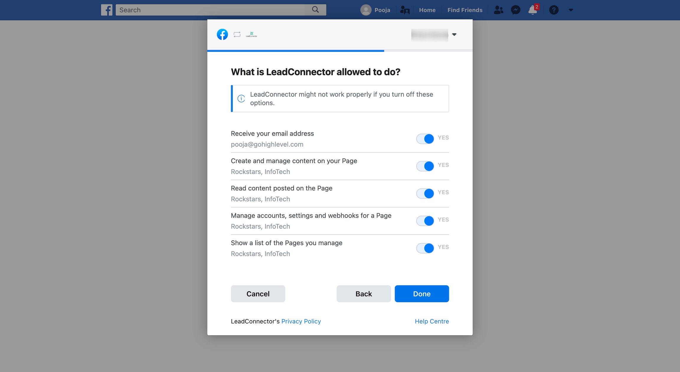 If you're connecting a profile for the first time, it's important to ensure that you grant LeadConnector all necessary permissions.Click Continue to complete the authorization process and avoid any connection issues.